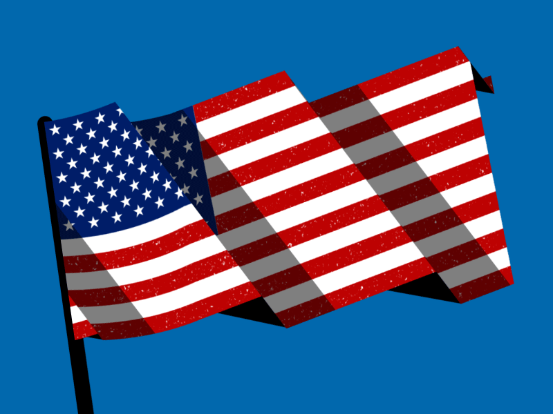 5. The flag of the United States of America has seven red stripes and six white stripes. These thirteen stripes represent the thirteen original colonies. There is also a blue rectangle in the top left corner where you can see fifty white stars which the number of states in the country.